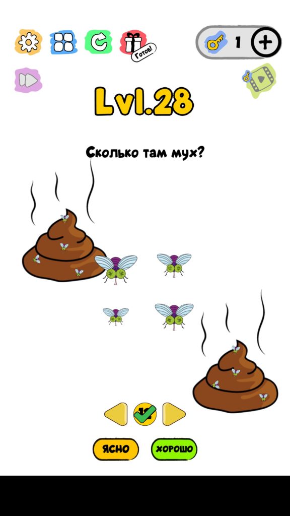 Сколько там мух? 28 уровень Trick Me: логические головоломки — Это игра созданная в виде викторины. Каждый новый уровень отличается от предыдущего, что делает игровой процесс затягивающим и интересным. Если ты хочешь узнать насколько ты умный, тогда эта игра точно для тебя! Trick Me поможет тебе развить нестандартное мышление, и повысить свой IQ. В этой игре уже есть 236 уровней, которые постоянно обновляются и пополняются. Но если застрял на одном или нескольких уровнях, и не можешь их пройти, то наш сайт придет на помощь, у нас есть все ответы на уровни игры Trick Me.