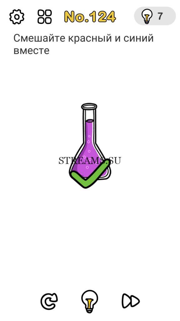 Смешайте красный и синий вместе. Уровень 124 — Brain Out: Ответ на этот уровень находится чуть ниже. Всегда было интересно узнать каков твой IQ? Эта игра поможет тебе узнать ответ на этот вопрос! В ней встречаются как логические загадки, так и не очень. С помощью этой интересной головоломки вы сможете развить нестандартное мышление, креативность, воображение а также улучшить способность запоминать. Некоторые решения задач, могут показаться абсурдными. Играйте в Brain Out с друзьями и родственниками. А если у вас не получается пройти один или несколько уровней, вы можете воспользоваться подсказками с нашего сайта.