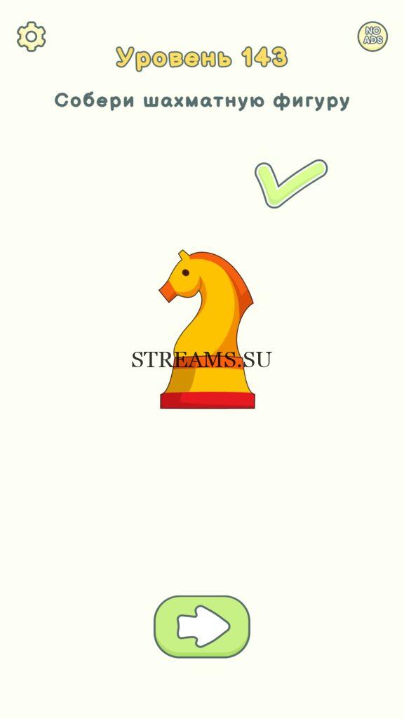 Собери шахматную фигуру. Уровень 143 — DOP 2: Delete One Part. Вы готовы к продолжению первой части игры? Тогда вперед! Эта игра DOP 2 (Расшифровка: Delete One Part) , которая отличается от первой части тем, что здесь нам нужно будет не дорисовывать предметы, а удалять или стирать их. Вас ждет множество хитроумных и интересных уровней. На первом этапе нам будут подсказывать, что нужно удали, но потом становится всё тяжелее и тяжелее решать головоломки. Разработчики постарались сделать игру привлекательной. Геймплей заставит вас просидеть за игрой очень долго. Красивая графика исполнения. Тренировка мозга и многое другое, всё это ждет нас в замечательной головоломке DOP 2. Если не получается пройти уровень, или зашли в тупик, то вы можете найти ответ на любой уровень на нашем сайте STREAMS.SU! Ответ на этот уровень находиться чуть ниже..