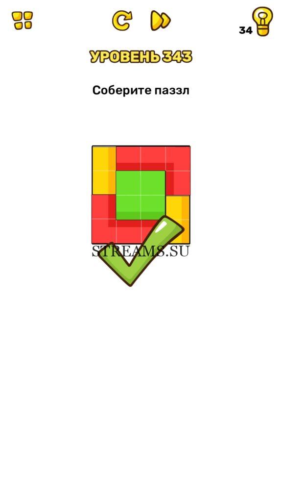 Соберите паззл. Уровень 343 — Brain Blow: Тест на гениальность — Ответ на этот уровень находится под фото. Очередная игра от популярных разработчиков головоломок CASUAL AZUR GAMES. Если вы хотите взорвать свой мозг и развить навыки нестандартного мышления, тогда игра Брейн Блоу определенно вам понравится. Если не получается решить задание, то попробуйте включить нестандартное мышление, тряхнуть телефон, погладить его или использовать больше пальцев. Эта игра способна развить в вас навыки следопыта, креативность и прокачать ваш IQ. Но, а если все-же не получается пройти уровень, найдите правильное решение на нашем сайте.