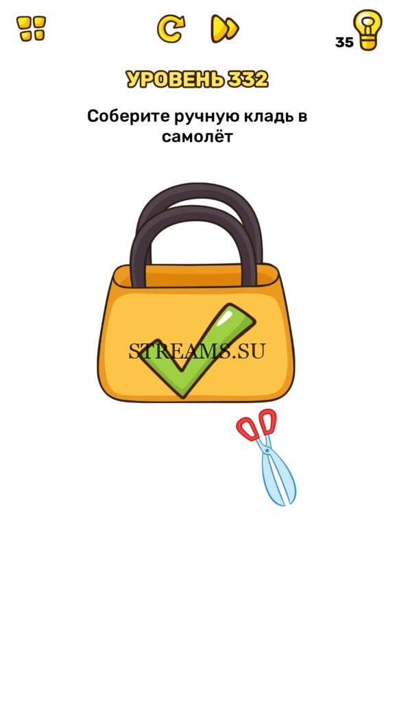 Соберите ручную кладь в самолёт. Уровень 332 — Brain Blow: Тест на гениальность — Ответ на этот уровень находится под фото. Очередная игра от популярных разработчиков головоломок CASUAL AZUR GAMES. Если вы хотите взорвать свой мозг и развить навыки нестандартного мышления, тогда игра Брейн Блоу определенно вам понравится. Если не получается решить задание, то попробуйте включить нестандартное мышление, тряхнуть телефон, погладить его или использовать больше пальцев. Эта игра способна развить в вас навыки следопыта, креативность и прокачать ваш IQ. Но, а если все-же не получается пройти уровень, найдите правильное решение на нашем сайте.