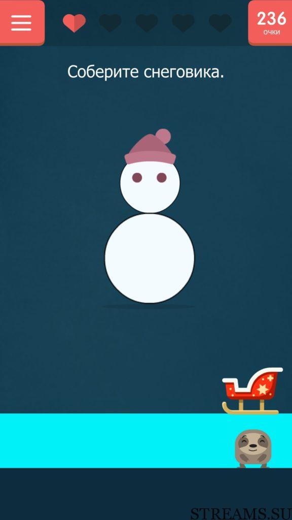 Соберите снеговика. 114 уровень Каверзный тест (Tricky test) — игра от разработчиков студии NatGames. Если вам надоели наивные и простые задачки и головоломки, то эта игра определенно для вас! Нужно будет трясти, переворачивать, гладить свой телефон, чтобы пройти уровень. В описании игры написано, что 94% скачавших, не пройдут игру с первого раза. Чтобы исправить этот процент в меньшую сторону, мы предоставляем вам ответы на все уровни игры.