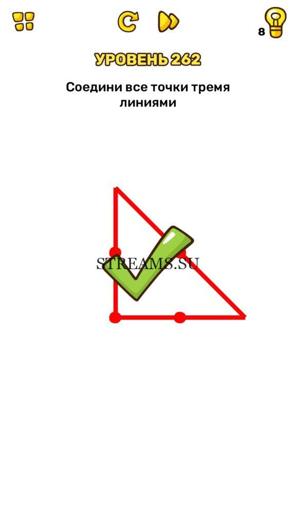 Соедини все точки тремя линиями. Уровень 262 — Brain Blow: Тест на гениальность — Ответ на этот уровень находится под фото. Очередная игра от популярных разработчиков головоломок CASUAL AZUR GAMES. Если вы хотите взорвать свой мозг и развить навыки нестандартного мышления, тогда игра Брейн Блоу определенно вам понравится. Если не получается решить задание, то попробуйте включить нестандартное мышление, тряхнуть телефон, погладить его или использовать больше пальцев. Эта игра способна развить в вас навыки следопыта, креативность и прокачать ваш IQ. Но, а если все-же не получается пройти уровень, найдите правильное решение на нашем сайте.