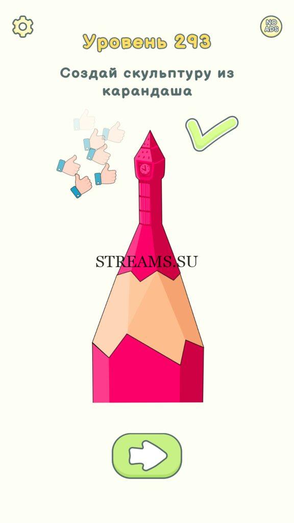 Создай скульптуру из карандаша. Уровень 293 — DOP 2: Delete One Part. Вы готовы к продолжению первой части игры? Тогда вперед! Эта игра DOP 2 (Расшифровка: Delete One Part) , которая отличается от первой части тем, что здесь нам нужно будет не дорисовывать предметы, а удалять или стирать их. Вас ждет множество хитроумных и интересных уровней. На первом этапе нам будут подсказывать, что нужно удали, но потом становится всё тяжелее и тяжелее решать головоломки. Разработчики постарались сделать игру привлекательной. Геймплей заставит вас просидеть за игрой очень долго. Красивая графика исполнения. Тренировка мозга и многое другое, всё это ждет нас в замечательной головоломке DOP 2. Если не получается пройти уровень, или зашли в тупик, то вы можете найти ответ на любой уровень на нашем сайте STREAMS.SU! Ответ на этот уровень находиться чуть ниже..