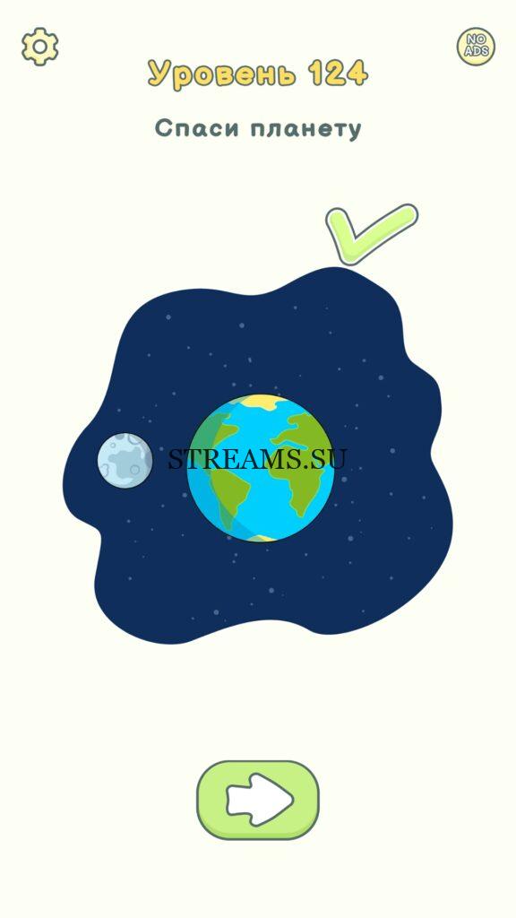 Спаси планету. Уровень 124 — DOP 2: Delete One Part. Вы готовы к продолжению первой части игры? Тогда вперед! Эта игра DOP 2 (Расшифровка: Delete One Part) , которая отличается от первой части тем, что здесь нам нужно будет не дорисовывать предметы, а удалять или стирать их. Вас ждет множество хитроумных и интересных уровней. На первом этапе нам будут подсказывать, что нужно удали, но потом становится всё тяжелее и тяжелее решать головоломки. Разработчики постарались сделать игру привлекательной. Геймплей заставит вас просидеть за игрой очень долго. Красивая графика исполнения. Тренировка мозга и многое другое, всё это ждет нас в замечательной головоломке DOP 2. Если не получается пройти уровень, или зашли в тупик, то вы можете найти ответ на любой уровень на нашем сайте STREAMS.SU! Ответ на этот уровень находиться чуть ниже..