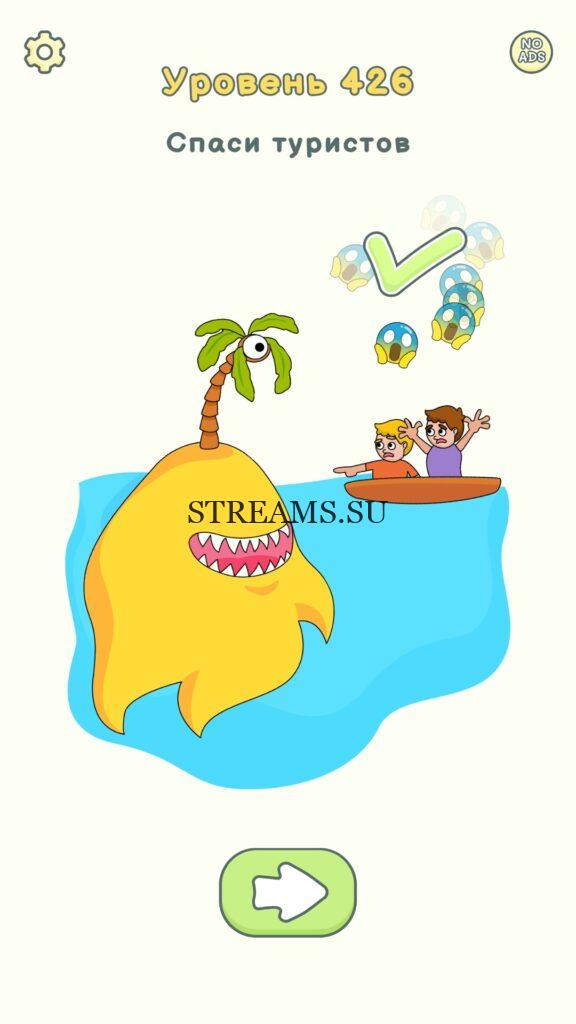 Спаси туристов. Уровень 426 — DOP 2: Delete One Part. Вы готовы к продолжению первой части игры? Тогда вперед! Эта игра DOP 2 (Расшифровка: Delete One Part) , которая отличается от первой части тем, что здесь нам нужно будет не дорисовывать предметы, а удалять или стирать их. Вас ждет множество хитроумных и интересных уровней. На первом этапе нам будут подсказывать, что нужно удали, но потом становится всё тяжелее и тяжелее решать головоломки. Разработчики постарались сделать игру привлекательной. Геймплей заставит вас просидеть за игрой очень долго. Красивая графика исполнения. Тренировка мозга и многое другое, всё это ждет нас в замечательной головоломке DOP 2. Если не получается пройти уровень, или зашли в тупик, то вы можете найти ответ на любой уровень на нашем сайте STREAMS.SU! Ответ на этот уровень находиться чуть ниже..
