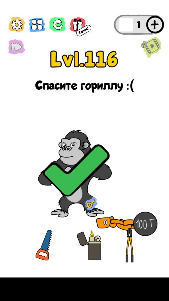 Спасите гориллу :(. 116 уровень Trick Me: логические головоломки — Это игра созданная в виде викторины. Каждый новый уровень отличается от предыдущего, что делает игровой процесс затягивающим и интересным. Если ты хочешь узнать насколько ты умный, тогда эта игра точно для тебя! Trick Me поможет тебе развить нестандартное мышление, и повысить свой IQ. В этой игре уже есть 236 уровней, которые постоянно обновляются и пополняются. Но если застрял на одном или нескольких уровнях, и не можешь их пройти, то наш сайт придет на помощь, у нас есть все ответы на уровни игры Trick Me.