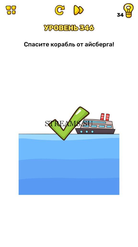 Спасите корабль от айсберга! Уровень 346 — Brain Blow: Тест на гениальность — Ответ на этот уровень находится под фото. Очередная игра от популярных разработчиков головоломок CASUAL AZUR GAMES. Если вы хотите взорвать свой мозг и развить навыки нестандартного мышления, тогда игра Брейн Блоу определенно вам понравится. Если не получается решить задание, то попробуйте включить нестандартное мышление, тряхнуть телефон, погладить его или использовать больше пальцев. Эта игра способна развить в вас навыки следопыта, креативность и прокачать ваш IQ. Но, а если все-же не получается пройти уровень, найдите правильное решение на нашем сайте.