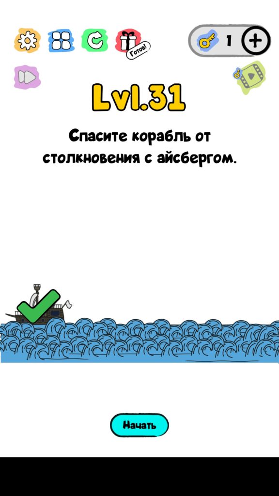 Спасите корабль от столкновения с айсбергом. 31 уровень Trick Me: логические головоломки — Это игра созданная в виде викторины. Каждый новый уровень отличается от предыдущего, что делает игровой процесс затягивающим и интересным. Если ты хочешь узнать насколько ты умный, тогда эта игра точно для тебя! Trick Me поможет тебе развить нестандартное мышление, и повысить свой IQ. В этой игре уже есть 236 уровней, которые постоянно обновляются и пополняются. Но если застрял на одном или нескольких уровнях, и не можешь их пройти, то наш сайт придет на помощь, у нас есть все ответы на уровни игры Trick Me.