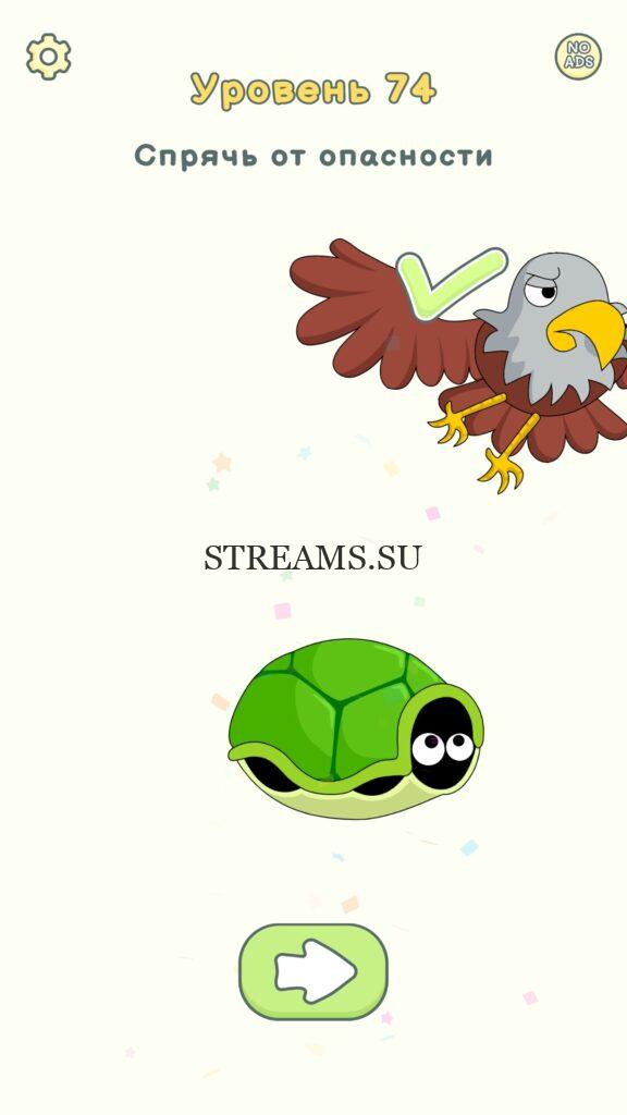 Спрячь от опасности. Уровень 74 — DOP 2: Delete One Part. Вы готовы к продолжению первой части игры? Тогда вперед! Эта игра DOP 2 (Расшифровка: Delete One Part) , которая отличается от первой части тем, что здесь нам нужно будет не дорисовывать предметы, а удалять или стирать их. Вас ждет множество хитроумных и интересных уровней. На первом этапе нам будут подсказывать, что нужно удали, но потом становится всё тяжелее и тяжелее решать головоломки. Разработчики постарались сделать игру привлекательной. Геймплей заставит вас просидеть за игрой очень долго. Красивая графика исполнения. Тренировка мозга и многое другое, всё это ждет нас в замечательной головоломке DOP 2. Если не получается пройти уровень, или зашли в тупик, то вы можете найти ответ на любой уровень на нашем сайте STREAMS.SU! Ответ на этот уровень находиться чуть ниже..