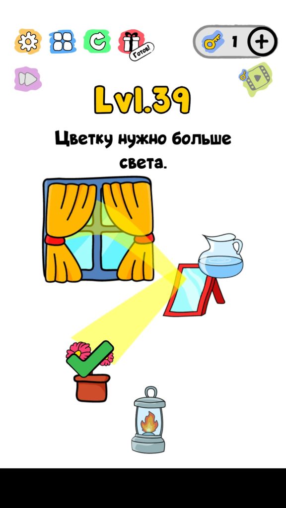 Цветку нужно больше света. 39 уровень Trick Me: логические головоломки — Это игра созданная в виде викторины. Каждый новый уровень отличается от предыдущего, что делает игровой процесс затягивающим и интересным. Если ты хочешь узнать насколько ты умный, тогда эта игра точно для тебя! Trick Me поможет тебе развить нестандартное мышление, и повысить свой IQ. В этой игре уже есть 236 уровней, которые постоянно обновляются и пополняются. Но если застрял на одном или нескольких уровнях, и не можешь их пройти, то наш сайт придет на помощь, у нас есть все ответы на уровни игры Trick Me.