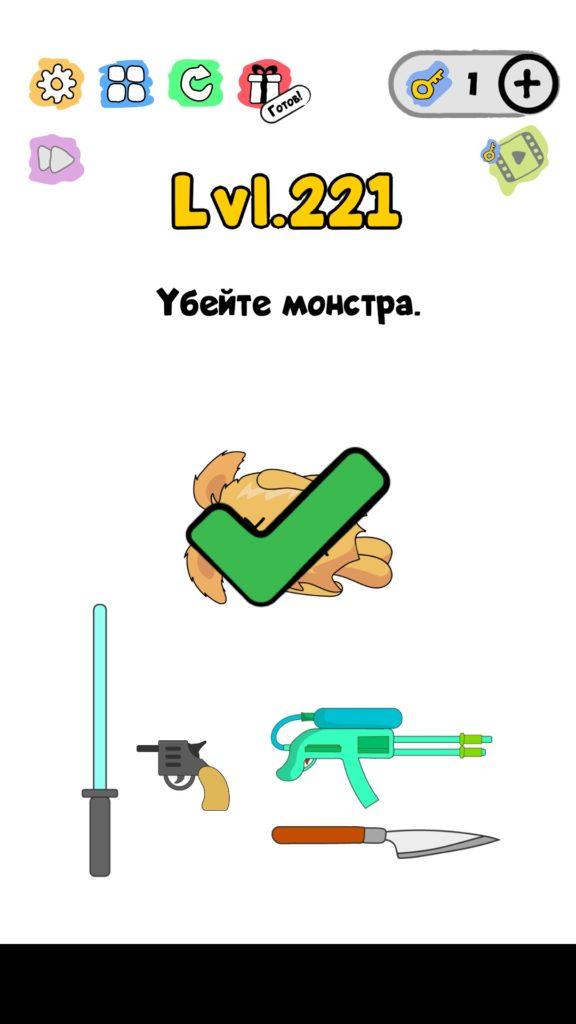 Убейте монстра. 221 уровень Trick Me: логические головоломки — Это игра созданная в виде викторины. Каждый новый уровень отличается от предыдущего, что делает игровой процесс затягивающим и интересным. Если ты хочешь узнать насколько ты умный, тогда эта игра точно для тебя! Trick Me поможет тебе развить нестандартное мышление, и повысить свой IQ. В этой игре уже есть 236 уровней, которые постоянно обновляются и пополняются. Но если застрял на одном или нескольких уровнях, и не можешь их пройти, то наш сайт придет на помощь, у нас есть все ответы на уровни игры Trick Me.