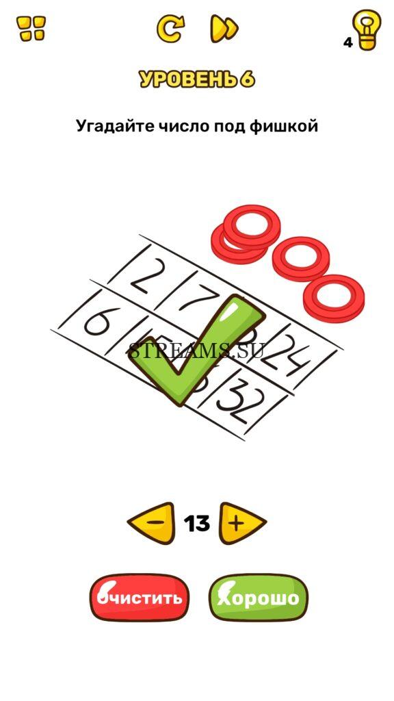 Угадайте число под фишкой. Уровень 6 — Brain Blow: Тест на гениальность — Ответ на этот уровень находится под фото. Очередная игра от популярных разработчиков головоломок CASUAL AZUR GAMES. Если вы хотите взорвать свой мозг и развить навыки нестандартного мышления, тогда игра Брейн Блоу определенно вам понравится. Если не получается решить задание, то попробуйте включить нестандартное мышление, тряхнуть телефон, погладить его или использовать больше пальцев. Эта игра способна развить в вас навыки следопыта, креативность и прокачать ваш IQ. Но, а если все-же не получается пройти уровень, найдите правильное решение на нашем сайте.