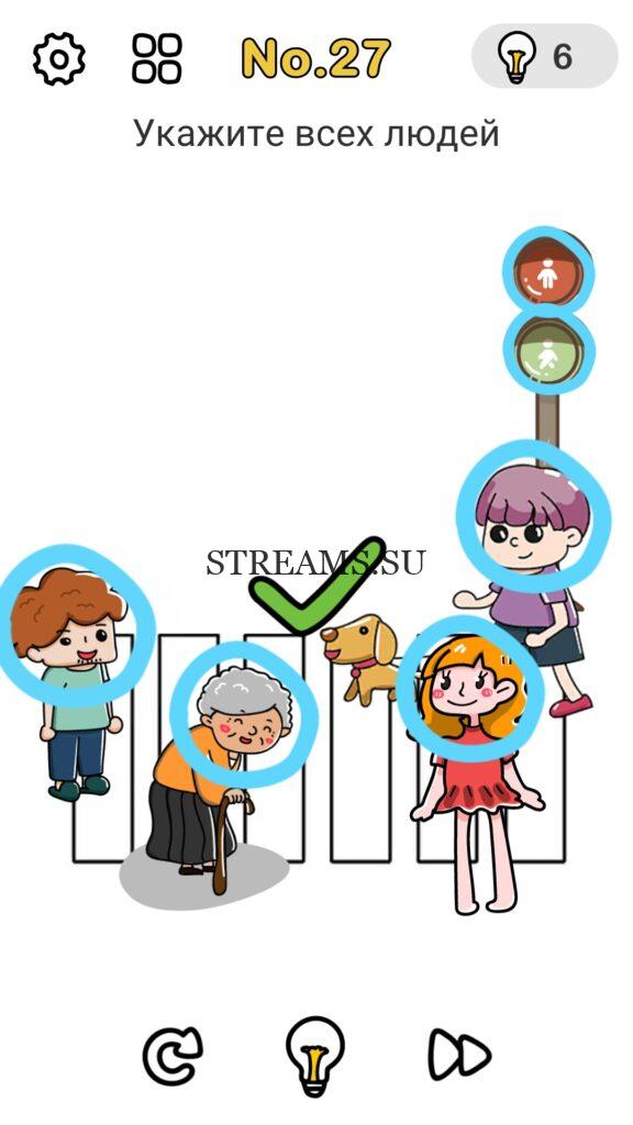 Укажите всех людей. Уровень 27 — Brain Out: Ответ на этот уровень находится чуть ниже. Всегда было интересно узнать каков твой IQ? Эта игра поможет тебе узнать ответ на этот вопрос! В ней встречаются как логические загадки, так и не очень. С помощью этой интересной головоломки вы сможете развить нестандартное мышление, креативность, воображение а также улучшить способность запоминать. Некоторые решения задач, могут показаться абсурдными. Играйте в Brain Out с друзьями и родственниками. А если у вас не получается пройти один или несколько уровней, вы можете воспользоваться подсказками с нашего сайта.