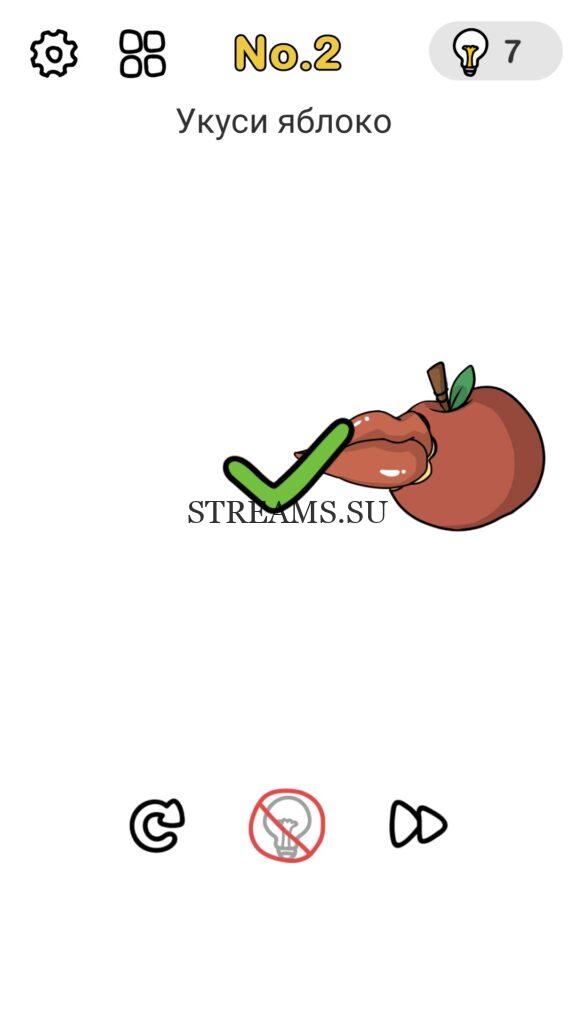 Укуси яблоко. (Победи их всех) Уровень 2 — Brain Out: Ответ на этот уровень находится чуть ниже. Всегда было интересно узнать каков твой IQ? Эта игра поможет тебе узнать ответ на этот вопрос! В ней встречаются как логические загадки, так и не очень. С помощью этой интересной головоломки вы сможете развить нестандартное мышление, креативность, воображение а также улучшить способность запоминать. Некоторые решения задач, могут показаться абсурдными. Играйте в Brain Out с друзьями и родственниками. А если у вас не получается пройти один или несколько уровней, вы можете воспользоваться подсказками с нашего сайта.