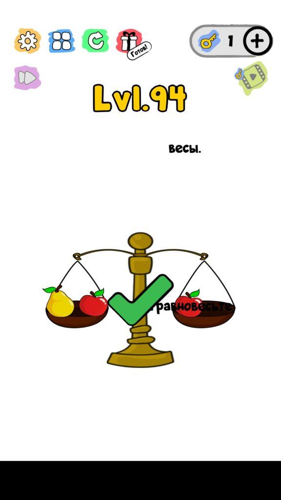 Уравновесьте весы. 94 уровень Trick Me: логические головоломки — Это игра созданная в виде викторины. Каждый новый уровень отличается от предыдущего, что делает игровой процесс затягивающим и интересным. Если ты хочешь узнать насколько ты умный, тогда эта игра точно для тебя! Trick Me поможет тебе развить нестандартное мышление, и повысить свой IQ. В этой игре уже есть 236 уровней, которые постоянно обновляются и пополняются. Но если застрял на одном или нескольких уровнях, и не можешь их пройти, то наш сайт придет на помощь, у нас есть все ответы на уровни игры Trick Me.