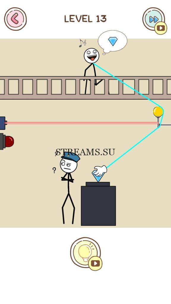 LEVEL 13 — Thief Puzzle — Интересная и веселая головоломка в которой нам нужно будет «красть» различные вещи. Но делать это так, чтобы нас не поймали. Эта игра не призывает к воровству. Нужно продумать план, чтобы завершить уровень. В основном первые уровни не так сложны как последующие. Здесь придется поднапрячь извилины и использовать свою смекалку. Нам придется проводить руку через различные места (рука у нас будет очень длинная), чтобы достичь бесхозного портфеля, кошелька, и т.д. Игра увлекает, и можно просидеть за ней часами не заметив как проходит время. Бывают такие уровни, что не получается, что-то украсть незаметно! Тогда на помощь приходит наш замечательный сайт с ответами на все уровни!