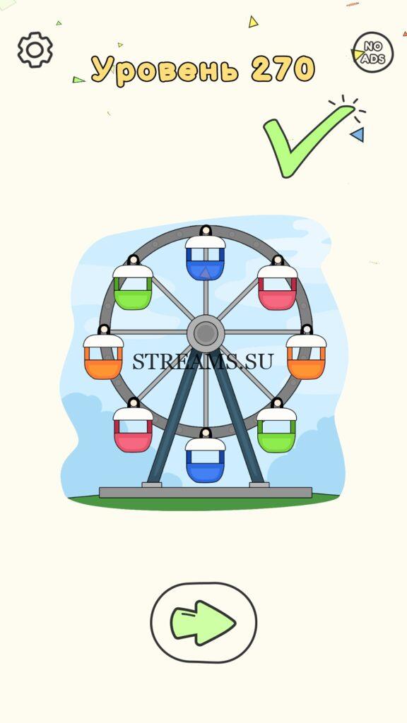 Ответ на 270 уровень DOP: Draw One Part — Это уникальная головоломка, в которой нам предстоит дорисовывать недостающие детали картины. Игра не имеет аналогов. С помощью «DOP», вы сможете расширить свой кругозор, развить воображение, хорошенько повеселиться и проверить насколько вы внимательны к деталям. Эта игра в свою очередь предлагает красивый геймплей и усложнение уровней, по мере их прохождения. Но может получиться так, что вы не сможете пройти некоторые уровни. Что тогда делать? Не беда, ниже на нашем сайте вы найдете ответы к игре — DOP: Draw One Part. Не забудьте поделиться с друзьями ссылкой на наш замечательный сайт.
