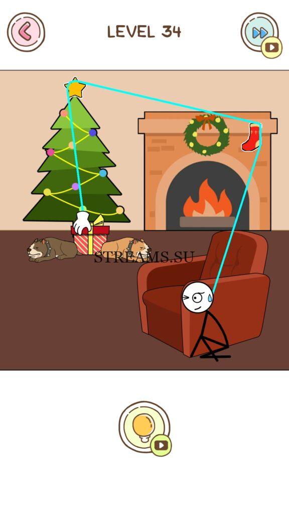 ОТВЕТ: Ведем руку через носок на камине, и за звезду на ёлке