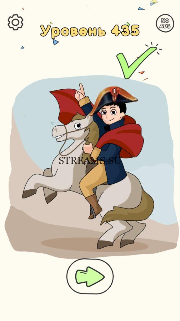 Ответ на 435 уровень DOP: Draw One Part — Это уникальная головоломка, в которой нам предстоит дорисовывать недостающие детали картины. Игра не имеет аналогов. С помощью «DOP», вы сможете расширить свой кругозор, развить воображение, хорошенько повеселиться и проверить насколько вы внимательны к деталям. Эта игра в свою очередь предлагает красивый геймплей и усложнение уровней, по мере их прохождения. Но может получиться так, что вы не сможете пройти некоторые уровни. Что тогда делать? Не беда, ниже на нашем сайте вы найдете ответы к игре — DOP: Draw One Part. Не забудьте поделиться с друзьями ссылкой на наш замечательный сайт.