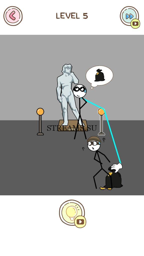LEVEL 5 — Thief Puzzle — Интересная и веселая головоломка в которой нам нужно будет «красть» различные вещи. Но делать это так, чтобы нас не поймали. Эта игра не призывает к воровству. Нужно продумать план, чтобы завершить уровень. В основном первые уровни не так сложны как последующие. Здесь придется поднапрячь извилины и использовать свою смекалку. Нам придется проводить руку через различные места (рука у нас будет очень длинная), чтобы достичь бесхозного портфеля, кошелька, и т.д. Игра увлекает, и можно просидеть за ней часами не заметив как проходит время. Бывают такие уровни, что не получается, что-то украсть незаметно! Тогда на помощь приходит наш замечательный сайт с ответами на все уровни!