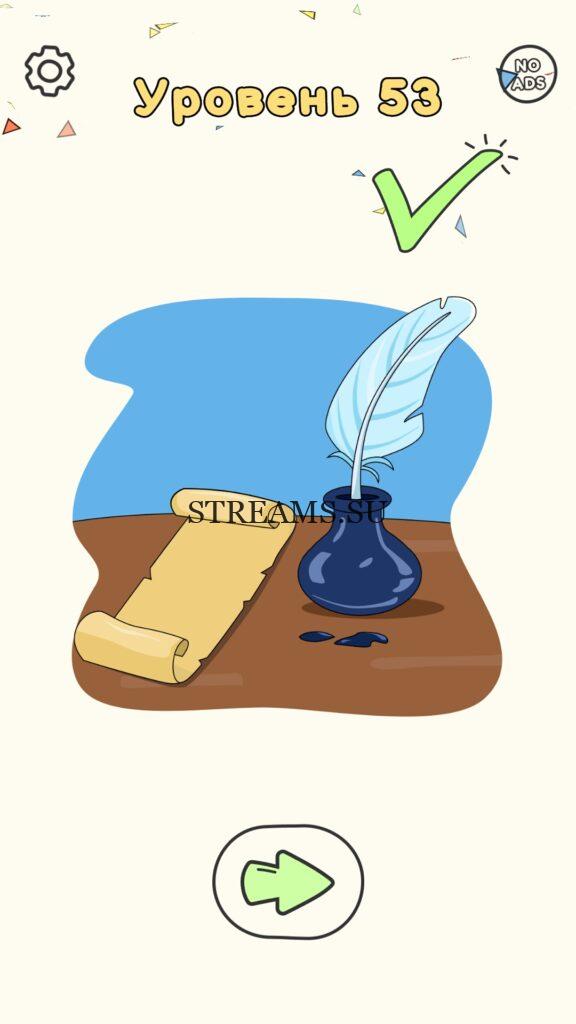 Ответ на 53 уровень DOP: Draw One Part — Это уникальная головоломка, в которой нам предстоит дорисовывать недостающие детали картины. Игра не имеет аналогов. С помощью «DOP», вы сможете расширить свой кругозор, развить воображение, хорошенько повеселиться и проверить насколько вы внимательны к деталям. Эта игра в свою очередь предлагает красивый геймплей и усложнение уровней, по мере их прохождения. Но может получиться так, что вы не сможете пройти некоторые уровни. Что тогда делать? Не беда, ниже на нашем сайте вы найдете ответы к игре — DOP: Draw One Part. Не забудьте поделиться с друзьями ссылкой на наш замечательный сайт.