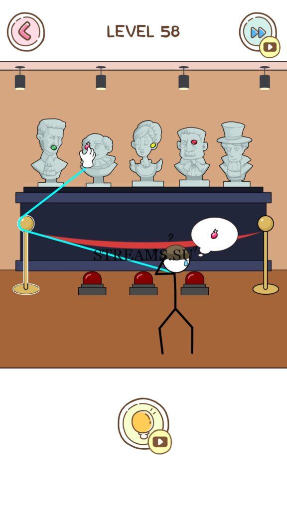 LEVEL 58 — Thief Puzzle — Интересная и веселая головоломка в которой нам нужно будет «красть» различные вещи. Но делать это так, чтобы нас не поймали. Эта игра не призывает к воровству. Нужно продумать план, чтобы завершить уровень. В основном первые уровни не так сложны как последующие. Здесь придется поднапрячь извилины и использовать свою смекалку. Нам придется проводить руку через различные места (рука у нас будет очень длинная), чтобы достичь бесхозного портфеля, кошелька, и т.д. Игра увлекает, и можно просидеть за ней часами не заметив как проходит время. Бывают такие уровни, что не получается, что-то украсть незаметно! Тогда на помощь приходит наш замечательный сайт с ответами на все уровни!