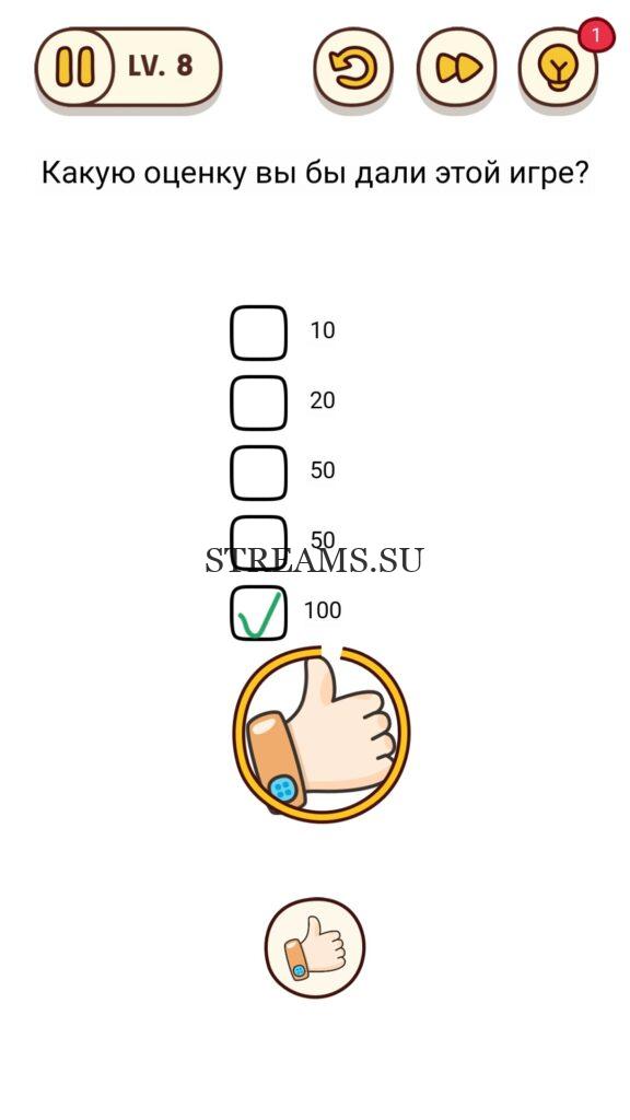 Уровень 8 — Brain Find – игра для любителей подумать над интересными задачами, ответ на этот уровень находится чуть ниже. Нужно включить собственное остроумие. Эта игра дает возможность увидеть множество локаций и разгадать бесконечное количество ребусов. Каждый отличается друг от друга. Создатели игры – «Focus apps» вложили не только материальные средства, но и всю любовь к игрокам. Ведь в приложении достаточно совершенная прорисовка, радующая глаз. Главным преимуществом является поддержка как Android так и IOS. Нередко бывает, что человек, проходящий уровень, не способен его решить (задача слишком сложна или непонятна). Наш сайт с ответами поможет игроку достичь вершин рейтинга и заполучить все бонусы.