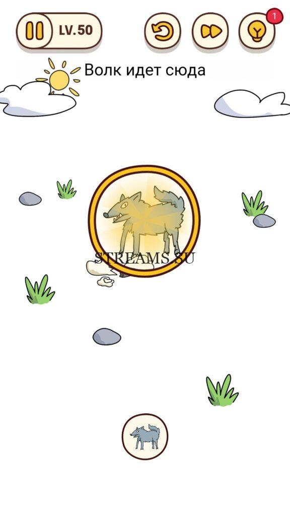 Волк идет сюда. Уровень 50 — Brain Find – игра для любителей подумать над интересными задачами, ответ на этот уровень находится чуть ниже. Нужно включить собственное остроумие. Эта игра дает возможность увидеть множество локаций и разгадать бесконечное количество ребусов. Каждый отличается друг от друга. Создатели игры – «Focus apps» вложили не только материальные средства, но и всю любовь к игрокам. Ведь в приложении достаточно совершенная прорисовка, радующая глаз. Главным преимуществом является поддержка как Android так и IOS. Нередко бывает, что человек, проходящий уровень, не способен его решить (задача слишком сложна или непонятна). Наш сайт с ответами поможет игроку достичь вершин рейтинга и заполучить все бонусы.