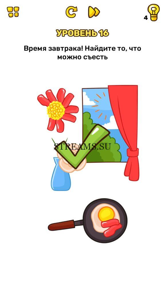 Время завтрака! Найдите то, что можно съесть. Уровень 16 — Brain Blow: Тест на гениальность — Ответ на этот уровень находится под фото. Очередная игра от популярных разработчиков головоломок CASUAL AZUR GAMES. Если вы хотите взорвать свой мозг и развить навыки нестандартного мышления, тогда игра Брейн Блоу определенно вам понравится. Если не получается решить задание, то попробуйте включить нестандартное мышление, тряхнуть телефон, погладить его или использовать больше пальцев. Эта игра способна развить в вас навыки следопыта, креативность и прокачать ваш IQ. Но, а если все-же не получается пройти уровень, найдите правильное решение на нашем сайте.