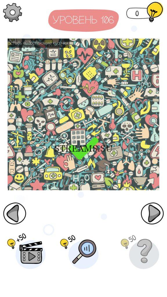 Вставь недостающие кусочки. Уровень 106 — Who is? Головоломки и загадки — это уникальная головоломка, с которой не соскучишься! Если вам понравились такие игры как Brain Test и вторая её часть, то вам придется по вкусу и эта игра. С помощью подсказок, которые нам предстоит найти, нужно проходить уровень за уровнем. С каждым уровнем сложность отгадки будет расти. Поэтому приготовьтесь попотеть, чтобы пройти все уровни. Преимущества этой игры в том, что она работает без интернета! Если у вас не получается пройти один из уровней, то не отчаивайтесь. Вы всегда сможете найти ответы к игре Who is? на нашем замечательном сайте!