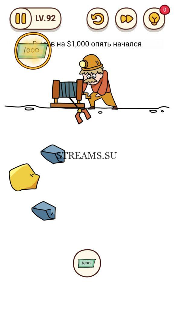 Вызов на $ 1,000 опять начался. Уровень 92 — Brain Find– уникальная игра в жанре «головоломка», ответ находится чуть ниже. Она имеет множество уровней и подуровней, которые весело проходить, без особых усилий и траты нервов. Игра нравится многим пользователям из-за приятного музыкального ряда, сопровождающегося весь игровой процесс. Тонко выполненной анимации и красивой графики, над которой поработали разработчики и вложили душу. Уникальность проекта состоит в том, что можно поворачивать экран на некоторых заданиях, увеличивать громкость динамика. То есть, всецело взаимодействовать не только с дисплеем, но и со всем мобильным устройством. На данный момент таких игр мало и не все они доступны в бесплатной версии! Brain Find переведена на русский язык. На нашем сайте, можно получить подсказки, если не получается пройти дальше.