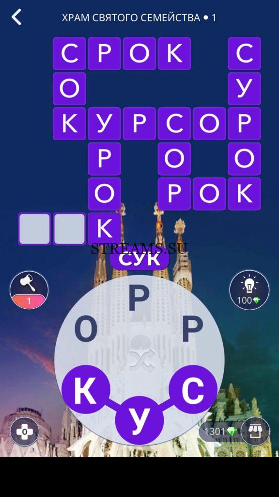 WOW ответы — Уровень 1: ХРАМ СВЯТОГО СЕМЕЙСТВА. (160 — ВОЯЖ) В этом уровне нам нужно составить слова из следующих букв: «РРСУКО«. Готовы совершить кругосветное путешествие? Эта чудесная игра исполнит ваше желание! С каждым последующим уровнем, будет расти сложность заданий. Игра WOW создана в виде кроссворда, в котором нужно будет соединять буквы, чтобы получить несколько слов. Чем больше вы будете отгадывать слов, тем проще будет отгадать остальное. С помощью Words of Wonders вы сможете расширить свой словарный запас, улучшить внимательность и хорошенько прокачать свой мозг! Если вы не можете пройти один из уровней, воспользуйтесь подсказкой с нашего сайта.