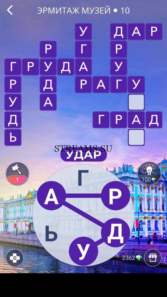 WOW ответы — Уровень 10: ЭРМИТАЖ МУЗЕЙ. (409 — ВОЯЖ) В этом уровне нам нужно составить слова из следующих букв: «ГРДУЬА«. Готовы совершить кругосветное путешествие? Эта чудесная игра исполнит ваше желание! С каждым последующим уровнем, будет расти сложность заданий. Игра WOW создана в виде кроссворда, в котором нужно будет соединять буквы, чтобы получить несколько слов. Чем больше вы будете отгадывать слов, тем проще будет отгадать остальное. С помощью Words of Wonders вы сможете расширить свой словарный запас, улучшить внимательность и хорошенько прокачать свой мозг! Если вы не можете пройти один из уровней, воспользуйтесь подсказкой с нашего сайта.