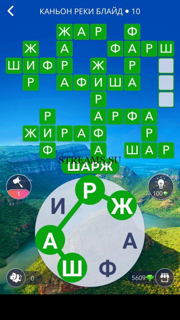 WOW ответы — Уровень 10: КАНЬОН РЕКИ БЛАЙД. (1065 — ВОЯЖ) В этом уровне нам нужно будет составить слова из следующих букв: «АЖФИАШР«. Игра Words of Wonders напряжет вашу память и проверит словарный запас. В путешествии вокруг света игрок узнает множество новых слов. Онлайн-кроссворд развивает речь человека, наполняет ее красотой русского языка. В процессе прохождения нужно находить и выделять спрятанные термины на игровом поле. Приложение цепляет сразу, можно забыть о времени. Важно, что уровни просто не кончаются. Нужно потратить не один десяток часов, чтобы действительно решить их все. При обилии контента игра не страдает от однообразия, каждая позиция предлагает уникальные задачи и неповторяемые загадки. Ответ чуть ниже…