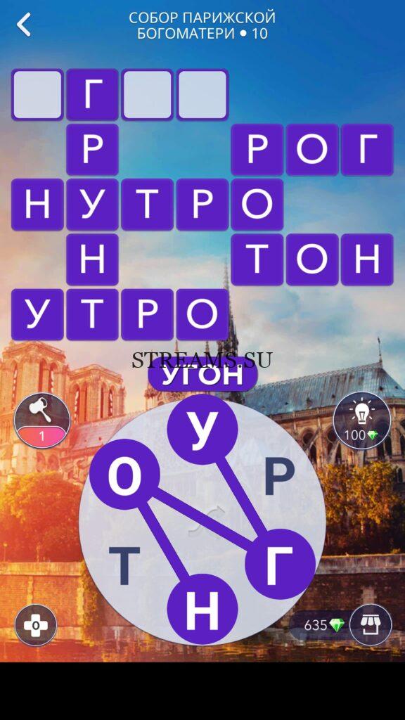 WOW ответы — Уровень 10: СОБОР ПАРИЖСКОЙ БОГОМАТЕРИ. (37 — ВОЯЖ) В этом уровне нам нужно составить слова из следующих букв: «УРГНТО«. Готовы совершить кругосветное путешествие? Эта чудесная игра исполнит ваше желание! С каждым последующим уровнем, будет расти сложность заданий. Игра WOW создана в виде кроссворда, в котором нужно будет соединять буквы, чтобы получить несколько слов. Чем больше вы будете отгадывать слов, тем проще будет отгадать остальное. С помощью Words of Wonders вы сможете расширить свой словарный запас, улучшить внимательность и хорошенько прокачать свой мозг! Если вы не можете пройти один из уровней, воспользуйтесь подсказкой с нашего сайта.