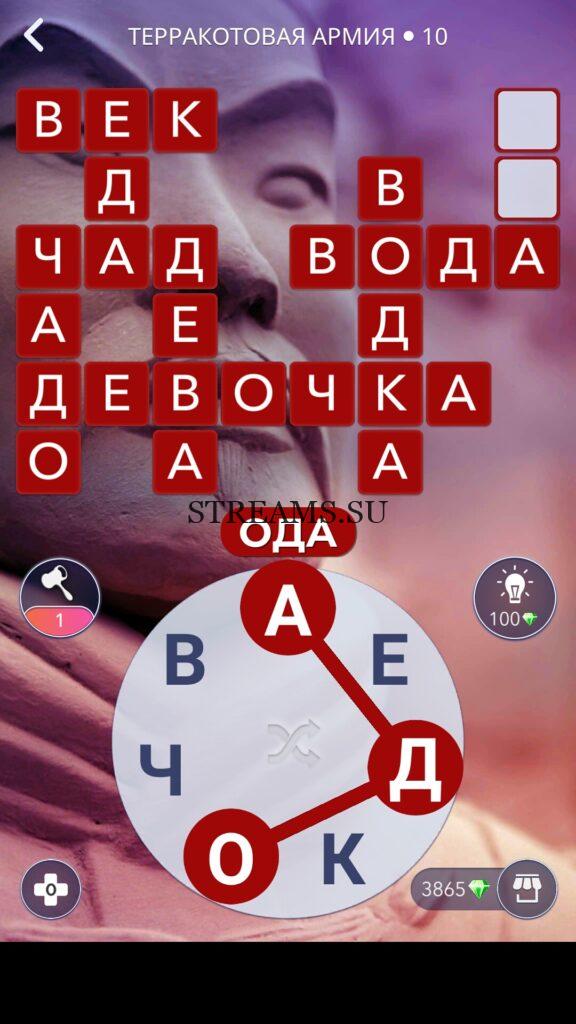 WOW ответы — Уровень 10: ТЕРРАКОТОВАЯ АРМИЯ. (745 — ВОЯЖ) В этом уровне нам нужно составить слова из следующих букв: «ОВКАДЧЕ«. Готовы совершить кругосветное путешествие? Эта чудесная игра исполнит ваше желание! С каждым последующим уровнем, будет расти сложность заданий. Игра WOW создана в виде кроссворда, в котором нужно будет соединять буквы, чтобы получить несколько слов. Чем больше вы будете отгадывать слов, тем проще будет отгадать остальное. С помощью Words of Wonders вы сможете расширить свой словарный запас, улучшить внимательность и хорошенько прокачать свой мозг! Если вы не можете пройти один из уровней, воспользуйтесь подсказкой с нашего сайта.