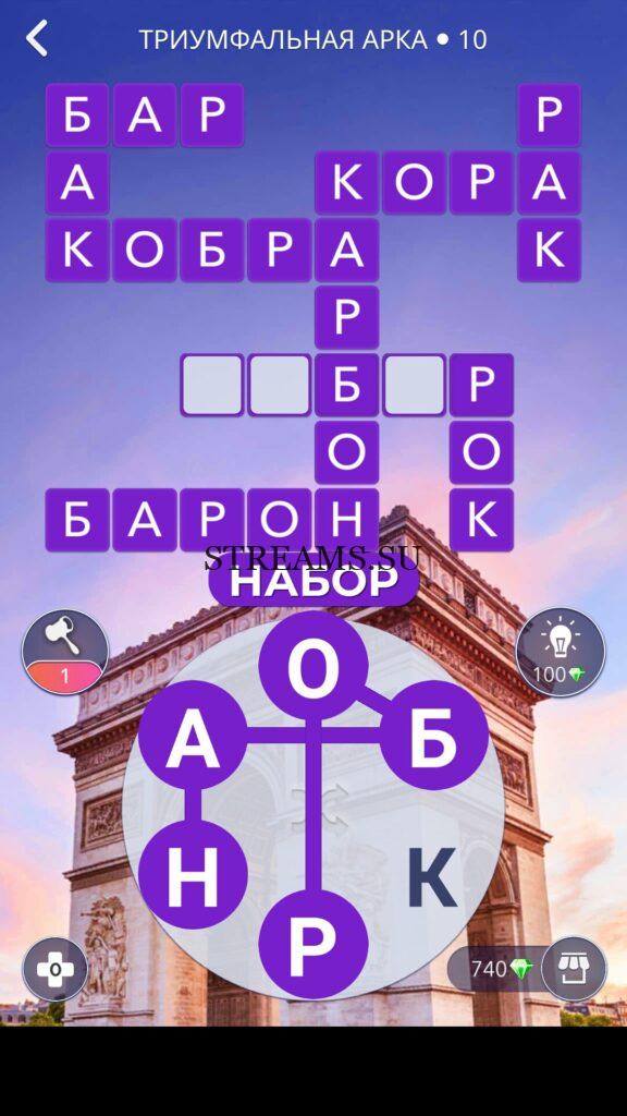 WOW ответы — Уровень 10: ТРИУМФАЛЬНАЯ АРКА. (61 — ВОЯЖ) В этом уровне нам нужно составить слова из следующих букв: «НБКОАР«. Готовы совершить кругосветное путешествие? Эта чудесная игра исполнит ваше желание! С каждым последующим уровнем, будет расти сложность заданий. Игра WOW создана в виде кроссворда, в котором нужно будет соединять буквы, чтобы получить несколько слов. Чем больше вы будете отгадывать слов, тем проще будет отгадать остальное. С помощью Words of Wonders вы сможете расширить свой словарный запас, улучшить внимательность и хорошенько прокачать свой мозг! Если вы не можете пройти один из уровней, воспользуйтесь подсказкой с нашего сайта.