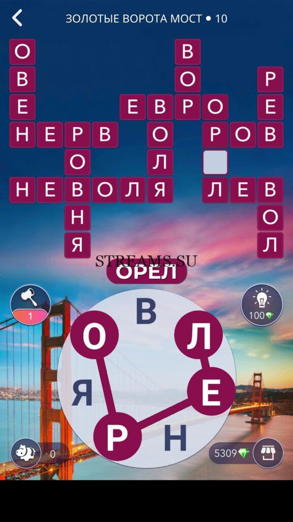 WOW ответы — Уровень 10: ЗОЛОТЫЕ ВОРОТА МОСТ. (985 — ВОЯЖ) В этом уровне нам нужно будет составить слова из следующих букв: «ОНРЛЕЯВ«. Игра Words of Wonders напряжет вашу память и проверит словарный запас. В путешествии вокруг света игрок узнает множество новых слов. Онлайн-кроссворд развивает речь человека, наполняет ее красотой русского языка. В процессе прохождения нужно находить и выделять спрятанные термины на игровом поле. Приложение цепляет сразу, можно забыть о времени. Важно, что уровни просто не кончаются. Нужно потратить не один десяток часов, чтобы действительно решить их все. При обилии контента игра не страдает от однообразия, каждая позиция предлагает уникальные задачи и неповторяемые загадки. Ответ чуть ниже…