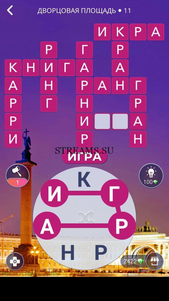 WOW ответы — Уровень 11: ДВОРЦОВАЯ ПЛОЩАДЬ. (426 — ВОЯЖ) В этом уровне нам нужно составить слова из следующих букв: «КГРРНАИ«. Готовы совершить кругосветное путешествие? Эта чудесная игра исполнит ваше желание! С каждым последующим уровнем, будет расти сложность заданий. Игра WOW создана в виде кроссворда, в котором нужно будет соединять буквы, чтобы получить несколько слов. Чем больше вы будете отгадывать слов, тем проще будет отгадать остальное. С помощью Words of Wonders вы сможете расширить свой словарный запас, улучшить внимательность и хорошенько прокачать свой мозг! Если вы не можете пройти один из уровней, воспользуйтесь подсказкой с нашего сайта.