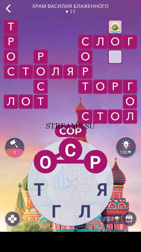 WOW ответы — Уровень 11: ХРАМ ВАСИЛИЯ БЛАЖЕННОГО. (458 — ВОЯЖ) В этом уровне нам нужно составить слова из следующих букв: «СРЯЛГТО«. Готовы совершить кругосветное путешествие? Эта чудесная игра исполнит ваше желание! С каждым последующим уровнем, будет расти сложность заданий. Игра WOW создана в виде кроссворда, в котором нужно будет соединять буквы, чтобы получить несколько слов. Чем больше вы будете отгадывать слов, тем проще будет отгадать остальное. С помощью Words of Wonders вы сможете расширить свой словарный запас, улучшить внимательность и хорошенько прокачать свой мозг! Если вы не можете пройти один из уровней, воспользуйтесь подсказкой с нашего сайта.