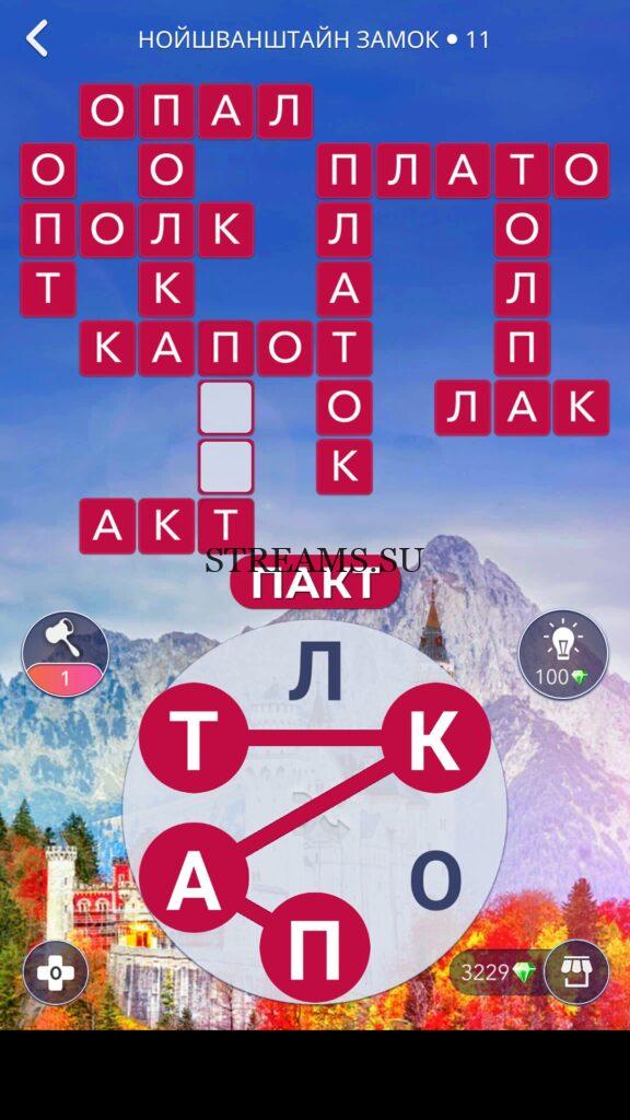WOW ответы — Уровень 11: НОЙШВАНШТАЙН ЗАМОК. (618 — ВОЯЖ) В этом уровне нам нужно составить слова из следующих букв: «ЛКОПАТ«. Готовы совершить кругосветное путешествие? Эта чудесная игра исполнит ваше желание! С каждым последующим уровнем, будет расти сложность заданий. Игра WOW создана в виде кроссворда, в котором нужно будет соединять буквы, чтобы получить несколько слов. Чем больше вы будете отгадывать слов, тем проще будет отгадать остальное. С помощью Words of Wonders вы сможете расширить свой словарный запас, улучшить внимательность и хорошенько прокачать свой мозг! Если вы не можете пройти один из уровней, воспользуйтесь подсказкой с нашего сайта.