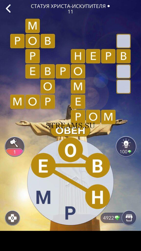 WOW ответы — Уровень 11: СТАТУЯ ХРИСТА-ИСКУПИТЕЛЯ. (938 — ВОЯЖ) В этом уровне нам нужно будет составить слова из следующих букв: «ОВНРМЕ«. Геймеры хотят развивать свою речь, узнавать новые понятия и получать информацию о чудесах света. Игра Words of Wonders для Android отвечает этим требованиям. Онлайн-кроссворд предлагает игрокам кругосветное путешествие, в ходе которого нужно находить и выделять спрятанные слова на игровом поле. Придется здорово напрячь память и сконцентрировать внимание. WoW привлекает разнообразием задач и кроссвордов. Десятков часов не хватит, чтобы найти все, что спрятали разработчики. Многообразие контента поражает, уровни просто не заканчиваются. Пользователи выбирают позицию по странам, в каждой есть несколько достопримечательностей. Ответы на эту игру всегда доступны на нашем сайте!
