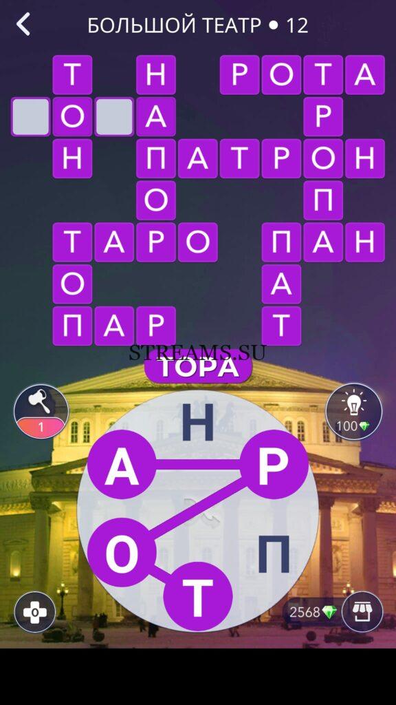 WOW ответы — Уровень 12: БОЛЬШОЙ ТЕАТР. (475 — ВОЯЖ) В этом уровне нам нужно составить слова из следующих букв: «РПОТНА«. Готовы совершить кругосветное путешествие? Эта чудесная игра исполнит ваше желание! С каждым последующим уровнем, будет расти сложность заданий. Игра WOW создана в виде кроссворда, в котором нужно будет соединять буквы, чтобы получить несколько слов. Чем больше вы будете отгадывать слов, тем проще будет отгадать остальное. С помощью Words of Wonders вы сможете расширить свой словарный запас, улучшить внимательность и хорошенько прокачать свой мозг! Если вы не можете пройти один из уровней, воспользуйтесь подсказкой с нашего сайта.