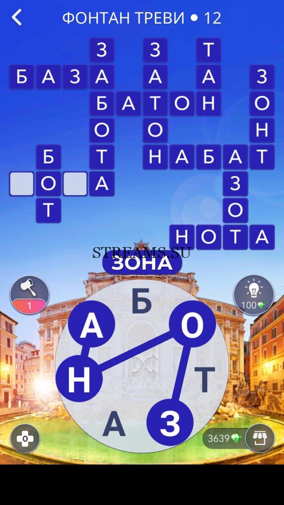 WOW ответы — Уровень 12: ФОНТАН ТРЕВИ. (715 — ВОЯЖ) В этом уровне нам нужно составить слова из следующих букв: «ЗАОБТАН«. Готовы совершить кругосветное путешествие? Эта чудесная игра исполнит ваше желание! С каждым последующим уровнем, будет расти сложность заданий. Игра WOW создана в виде кроссворда, в котором нужно будет соединять буквы, чтобы получить несколько слов. Чем больше вы будете отгадывать слов, тем проще будет отгадать остальное. С помощью Words of Wonders вы сможете расширить свой словарный запас, улучшить внимательность и хорошенько прокачать свой мозг! Если вы не можете пройти один из уровней, воспользуйтесь подсказкой с нашего сайта.