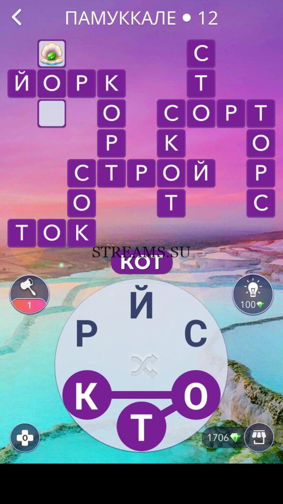 WOW ответы — Уровень 12: ПАМУККАЛЕ. (267 — ВОЯЖ) В этом уровне нам нужно составить слова из следующих букв: «ЙСОТКР«. Готовы совершить кругосветное путешествие? Эта чудесная игра исполнит ваше желание! С каждым последующим уровнем, будет расти сложность заданий. Игра WOW создана в виде кроссворда, в котором нужно будет соединять буквы, чтобы получить несколько слов. Чем больше вы будете отгадывать слов, тем проще будет отгадать остальное. С помощью Words of Wonders вы сможете расширить свой словарный запас, улучшить внимательность и хорошенько прокачать свой мозг! Если вы не можете пройти один из уровней, воспользуйтесь подсказкой с нашего сайта.
