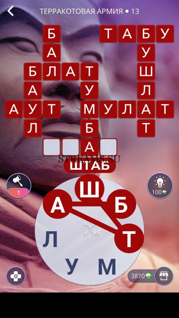 WOW ответы — Уровень 13: ТЕРРАКОТОВАЯ АРМИЯ. (748 — ВОЯЖ) В этом уровне нам нужно составить слова из следующих букв: «УШТАБМЛ«. Готовы совершить кругосветное путешествие? Эта чудесная игра исполнит ваше желание! С каждым последующим уровнем, будет расти сложность заданий. Игра WOW создана в виде кроссворда, в котором нужно будет соединять буквы, чтобы получить несколько слов. Чем больше вы будете отгадывать слов, тем проще будет отгадать остальное. С помощью Words of Wonders вы сможете расширить свой словарный запас, улучшить внимательность и хорошенько прокачать свой мозг! Если вы не можете пройти один из уровней, воспользуйтесь подсказкой с нашего сайта.