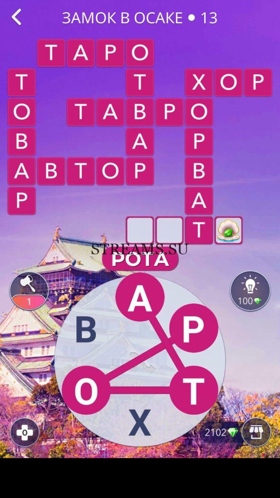 WOW ответы — Уровень 13: ЗАМОК В ОСАКЕ. (364 — ВОЯЖ) В этом уровне нам нужно составить слова из следующих букв: «АРТХОВ«. Готовы совершить кругосветное путешествие? Эта чудесная игра исполнит ваше желание! С каждым последующим уровнем, будет расти сложность заданий. Игра WOW создана в виде кроссворда, в котором нужно будет соединять буквы, чтобы получить несколько слов. Чем больше вы будете отгадывать слов, тем проще будет отгадать остальное. С помощью Words of Wonders вы сможете расширить свой словарный запас, улучшить внимательность и хорошенько прокачать свой мозг! Если вы не можете пройти один из уровней, воспользуйтесь подсказкой с нашего сайта.