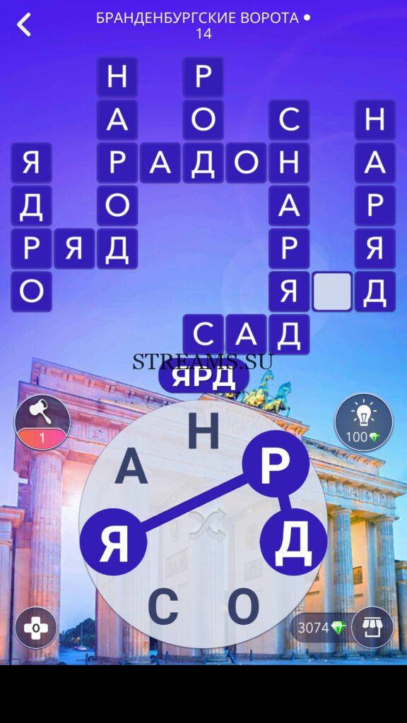 WOW ответы — Уровень 14: БРАНДЕНБУРГСКИЕ ВОРОТА. (573 — ВОЯЖ) В этом уровне нам нужно составить слова из следующих букв: «НРДАЯСО«. Готовы совершить кругосветное путешествие? Эта чудесная игра исполнит ваше желание! С каждым последующим уровнем, будет расти сложность заданий. Игра WOW создана в виде кроссворда, в котором нужно будет соединять буквы, чтобы получить несколько слов. Чем больше вы будете отгадывать слов, тем проще будет отгадать остальное. С помощью Words of Wonders вы сможете расширить свой словарный запас, улучшить внимательность и хорошенько прокачать свой мозг! Если вы не можете пройти один из уровней, воспользуйтесь подсказкой с нашего сайта.