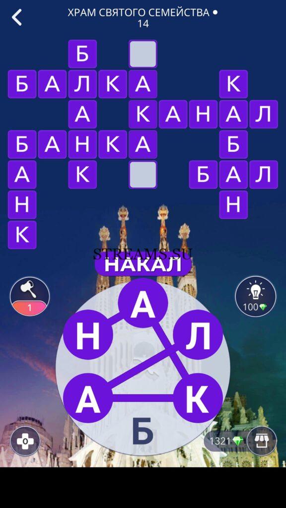 WOW ответы — Уровень 14: ХРАМ СВЯТОГО СЕМЕЙСТВА. (173 — ВОЯЖ) В этом уровне нам нужно составить слова из следующих букв: «АКБЛАН«. Готовы совершить кругосветное путешествие? Эта чудесная игра исполнит ваше желание! С каждым последующим уровнем, будет расти сложность заданий. Игра WOW создана в виде кроссворда, в котором нужно будет соединять буквы, чтобы получить несколько слов. Чем больше вы будете отгадывать слов, тем проще будет отгадать остальное. С помощью Words of Wonders вы сможете расширить свой словарный запас, улучшить внимательность и хорошенько прокачать свой мозг! Если вы не можете пройти один из уровней, воспользуйтесь подсказкой с нашего сайта.
